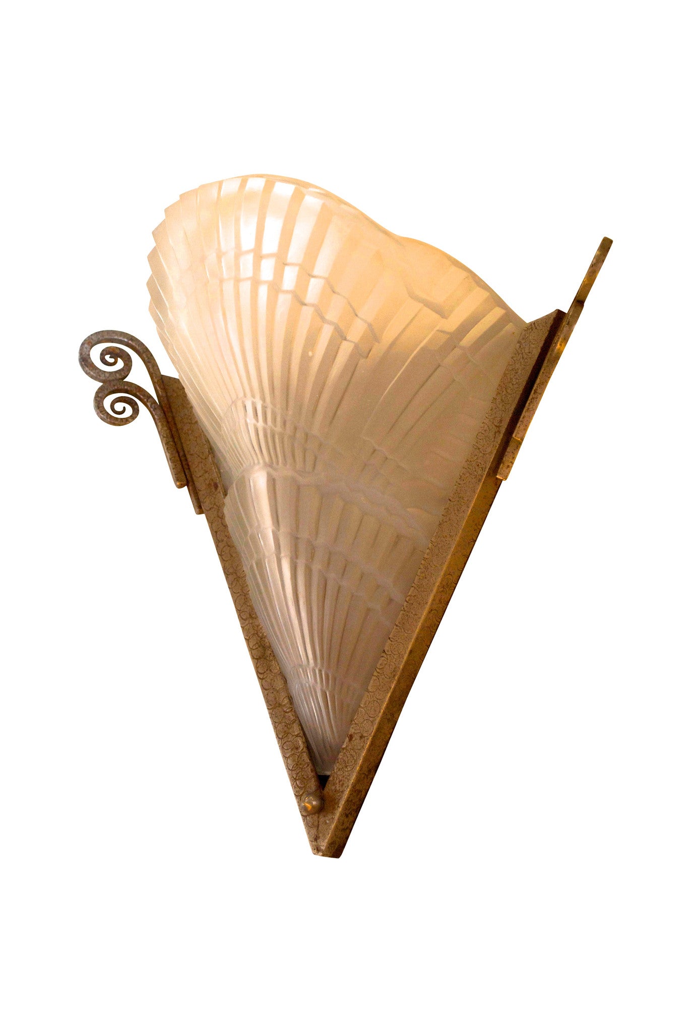 This exquisite piece is truly special. The art glass is signed by Jean Noverdy was made in the late 20's, early 30's. This item, once sold, will be electrically reconditioned...